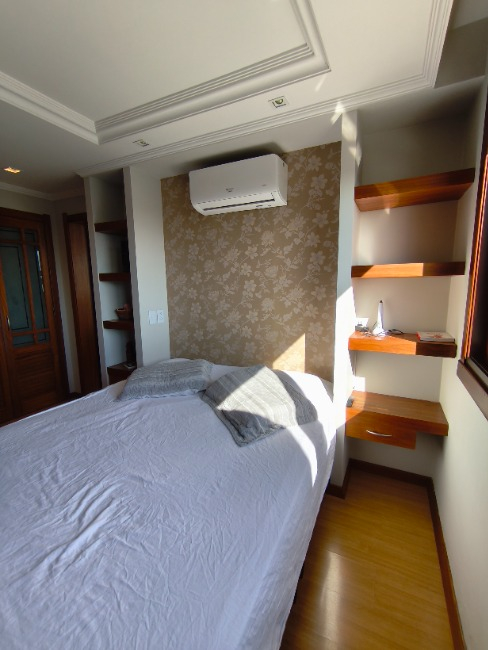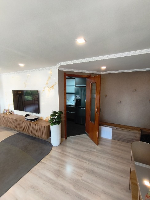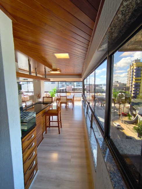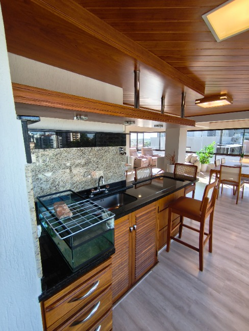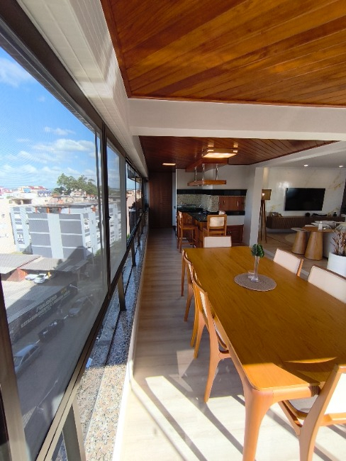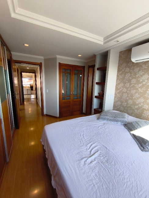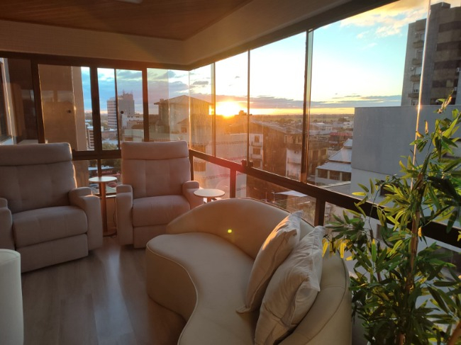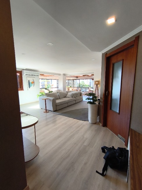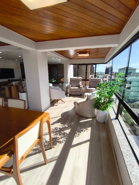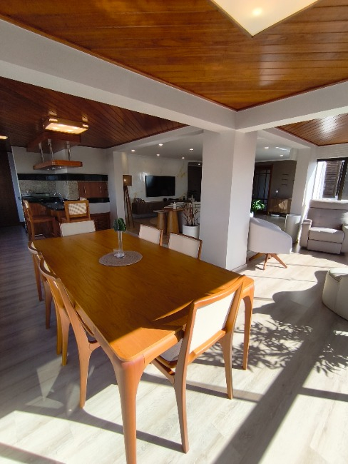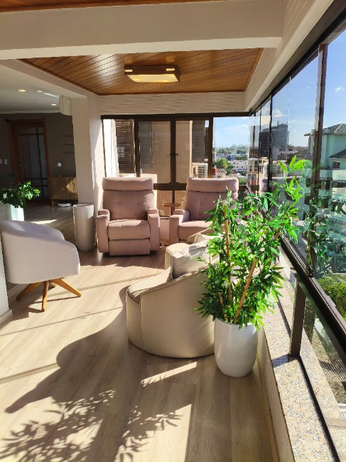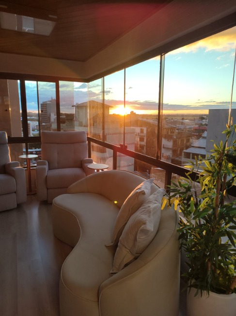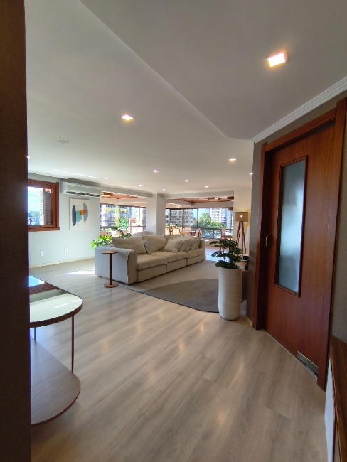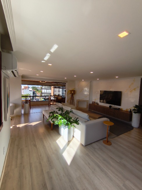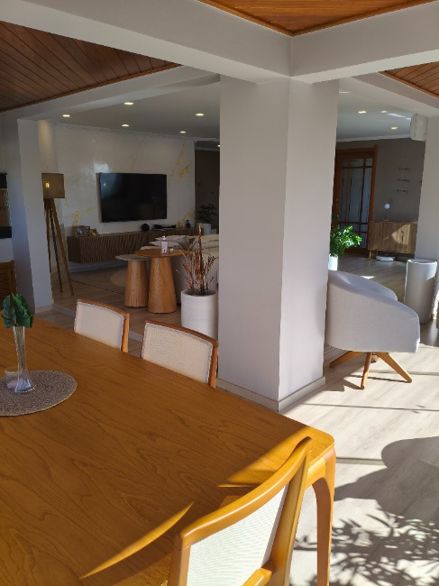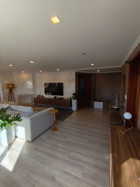 Possui 198 m² de área total e 149 m² de área privativa, com ambientes amplos e bem distribuídos. A sala de estar se destaca pelas amplas janelas de vidro, proporcionando uma vista maravilhosa e ótima iluminação natural.