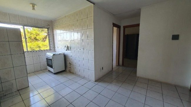 Apartamento com 2 dormitórios, sala, banheiro, cozinha e área de serviço.