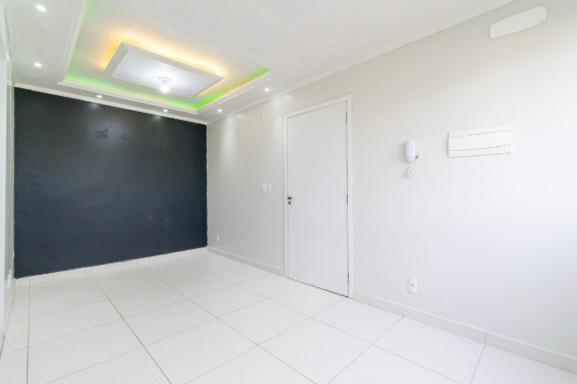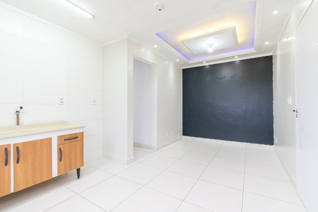 - Sala com rebaixo em gesso e iluminação integrada à cozinha
