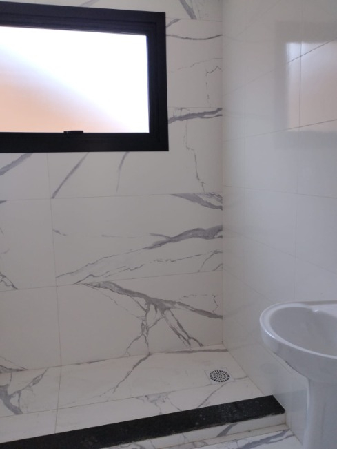 aberturas em alumínio black, revestimento em porcelanato, gesso rebaixado e parede detalhada em 3D.