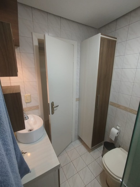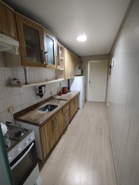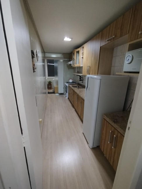 Lindo apto dois 2 dormitórios com sala, cozinha e banheiro e tem sacada . Fica no AP a cozinha planejada, banheiro e guarda roupa novo dois meses de uso no quarto de solteiro.