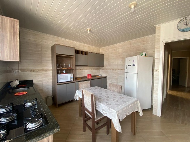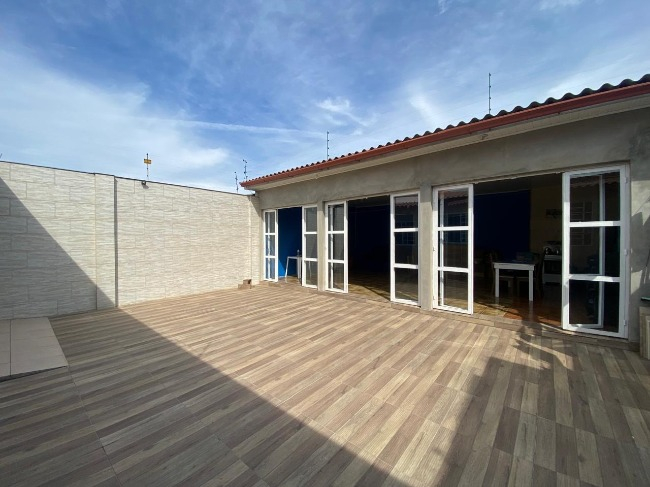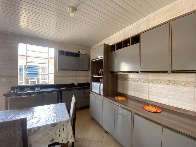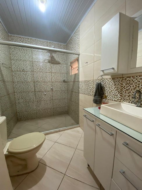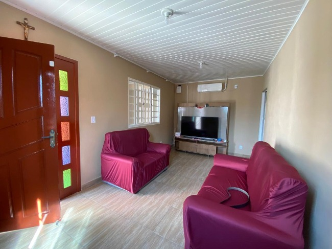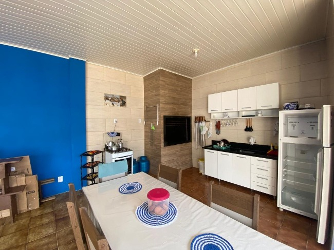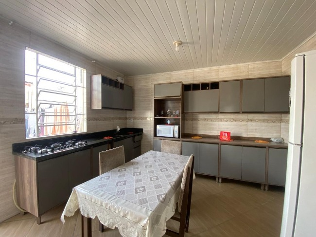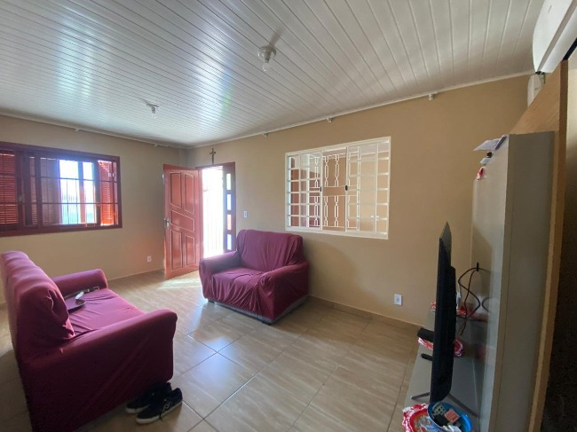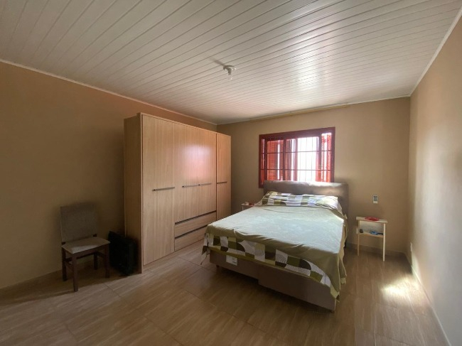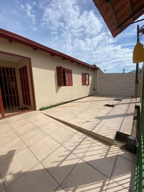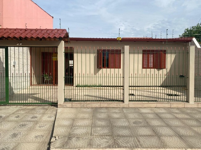 Casa térrea à venda no Bairro Jardim América, com 3 dormitórios, sendo um suíte, sala, cozinha, lavanderia, 2 banheiros, salão de festas com churrasqueira e lavabo, além de vaga de garagem coberta para dois carros.