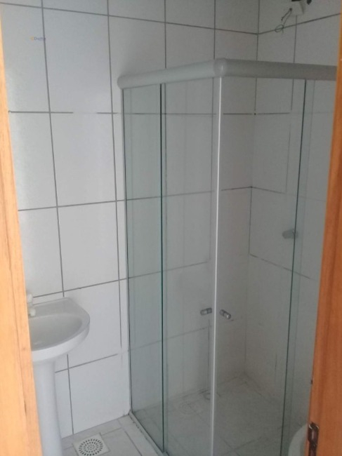 Banheiro moderno: Equipado com box de vidro, garantindo organização e facilidade na limpeza.