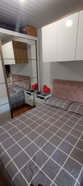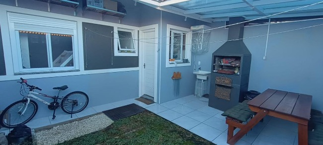 Possui 2 dormitórios, banheiro social, piso vinílico em toda área interna, churrasqueira, área dos fundos coberta em vidro (espaço gourmet), garagem para 2 carros com PAVS e cobertura em pergolado.