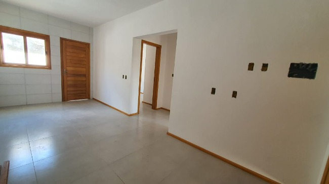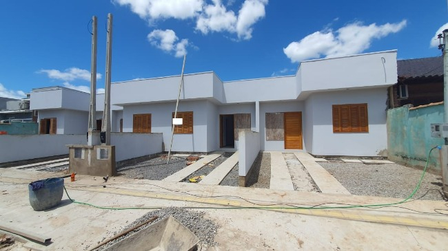 Casas novas de 2 dormitórios, sala e cozinha conjugadas, banheiro social, cozinha e pequeno pátio nos fundos com área de serviço.