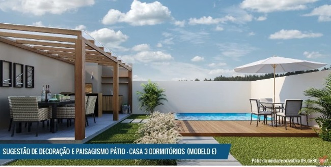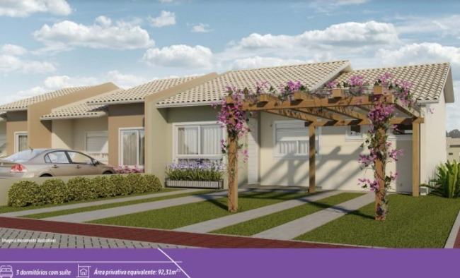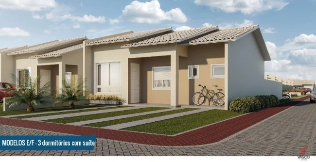 Novo residencial com sistema de energia solar, extremamente ecológico, imóvel de 3 dormitórios com suíte e amplo pátio, 8 modelos de casas, portaria 24 horas e monitoramento por câmeras, ciclovias, bicicletas comunitárias condominiais, casas com espera pra água quente, laje no forro, vaga de estacionamento, vaga para dois carros, esquadrias de alumínio com persiana.