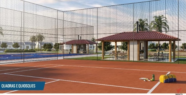 Condomínio com espaço gourmet, brinquedoteca, piscina, quadra poliesportiva com vestiários, quadra de tênis, sala fitness, espaço pet, pista de caminhada, quiosques com churrasqueira e horta condominial.