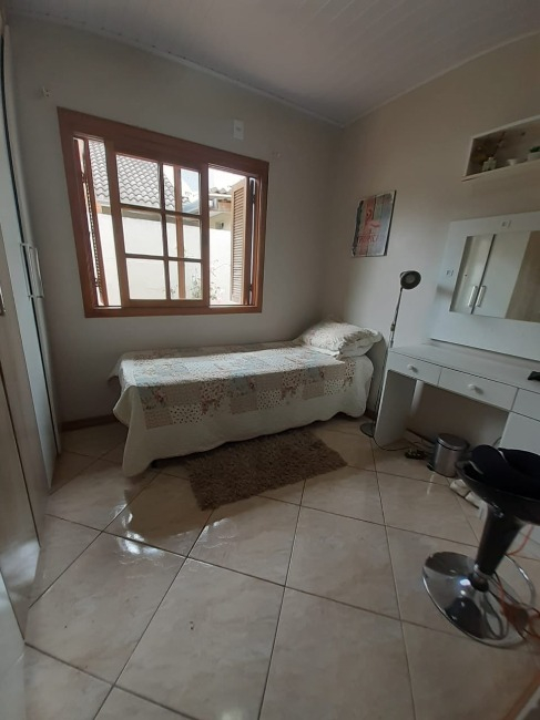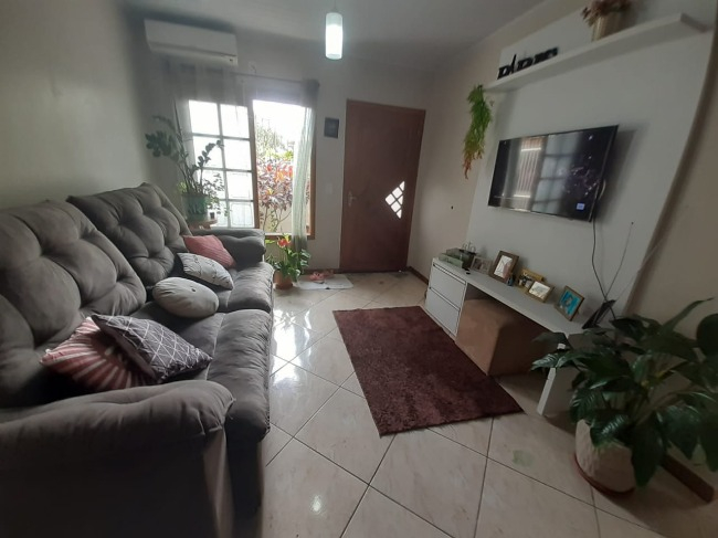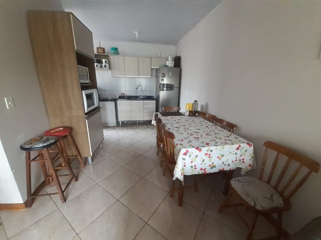 São 2 dormitórios, sala de estar/jantar, banheiro social, cozinha, área de serviço e pátio.
