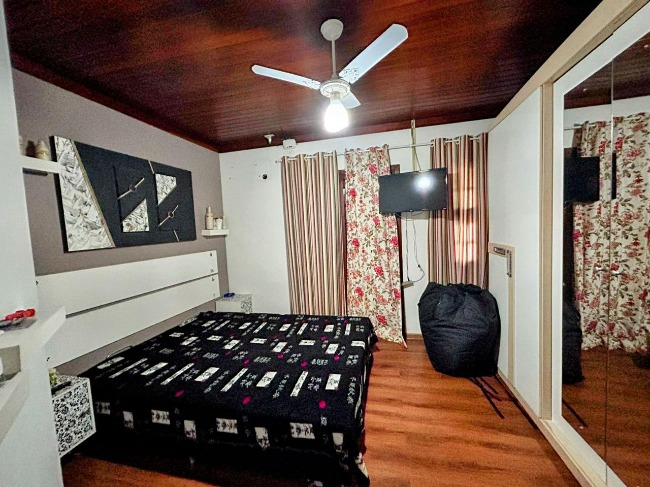 - Três dormitórios (um com sacada para frente e duas cadeiras de balanço);