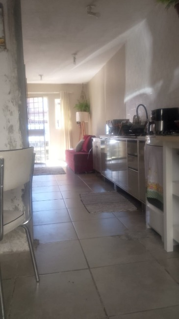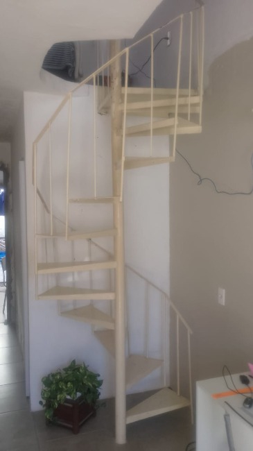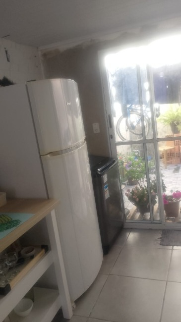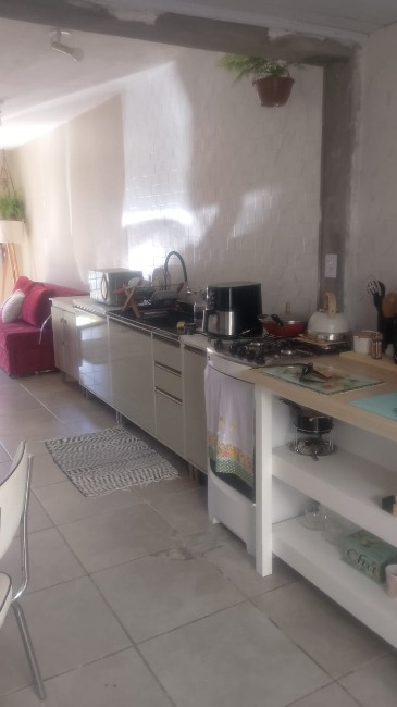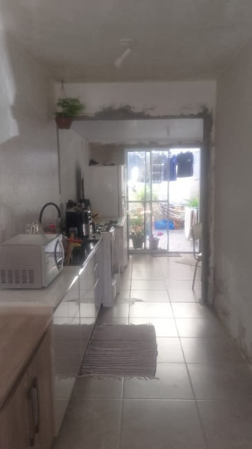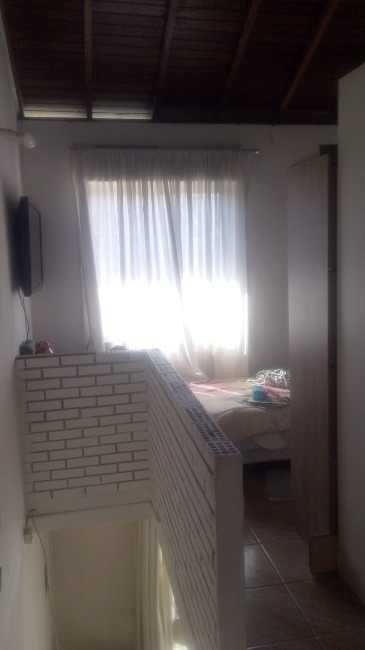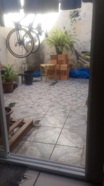 Sobrado com 2 dormitórios, sala, cozinha, banheiro, garagem na frente e pátio nos fundos.